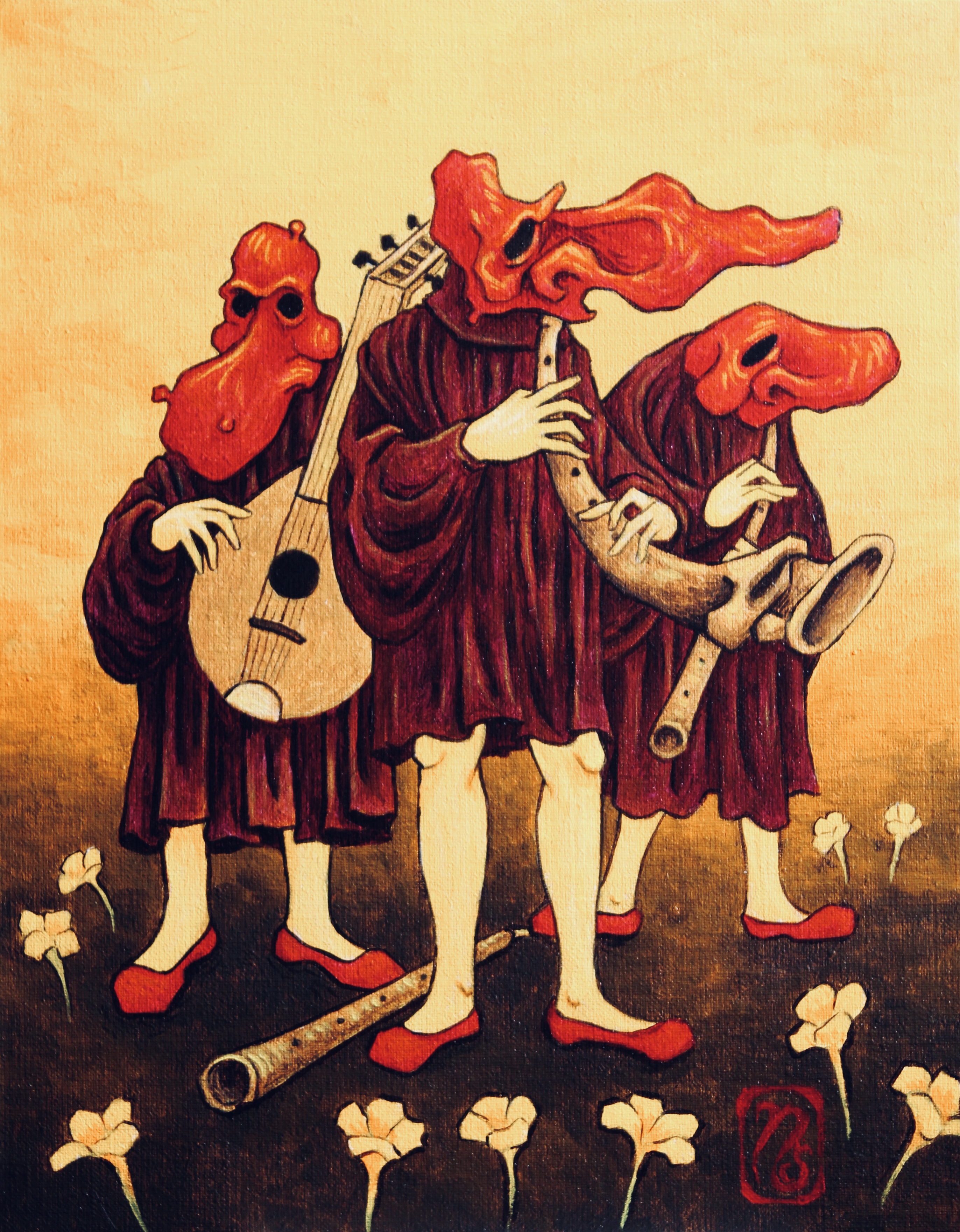 From January 2018 to September 2023, I ran a decorative and fine art practice called Nick Smith Paintings. I worked in acrylic, tempera and oil paint, and digital media, and dealt with subjects from natural to abstract to religious and philosophical. I found myself drawn especially to surreal and grotesque subjects, finding the strange in everyday objects or landscapes.